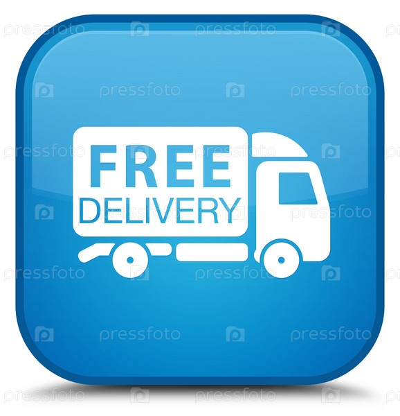 Free delivery truck icon special cyan blue square button Икона бесплатного грузовика для доставки специальная синяя синевая квадратная кнопка