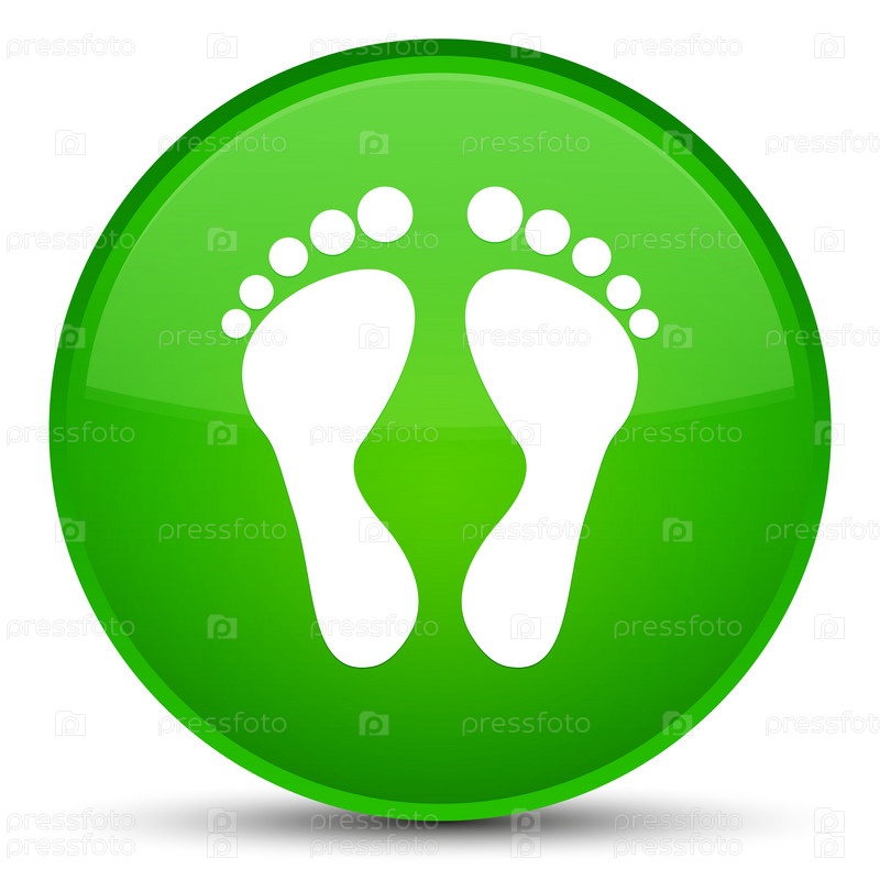 Икона отпечатков ног специальная зеленая круглая кнопка