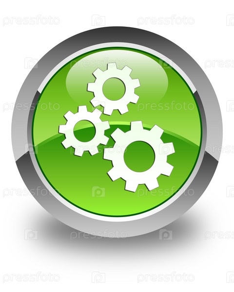 Икона Gears глянцевая зеленая круглая кнопка