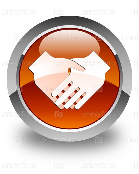 Икона рукопожатия блестящая коричневая круглая кнопка