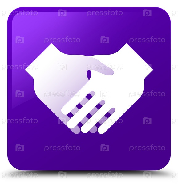 Икона рукопожатия фиолетовая квадратная кнопка