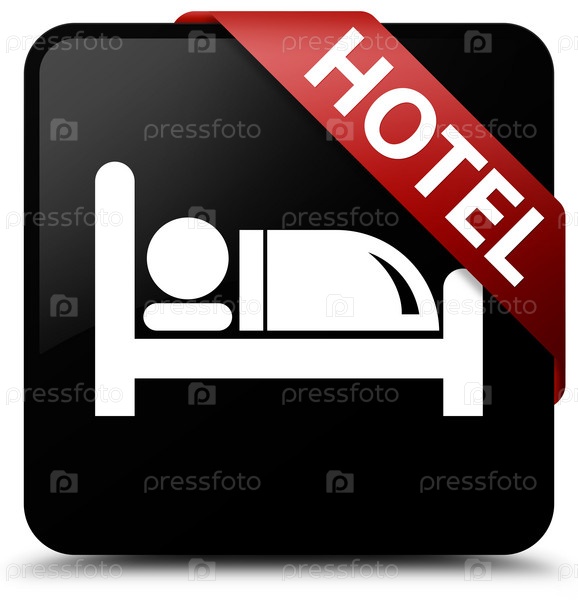 Отель черный квадратный кнопка красная лента в углу