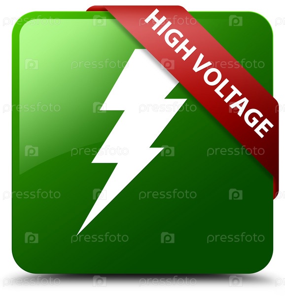 Высокое напряжение (икона электричества) зеленая квадратная кнопка красная лента в углу