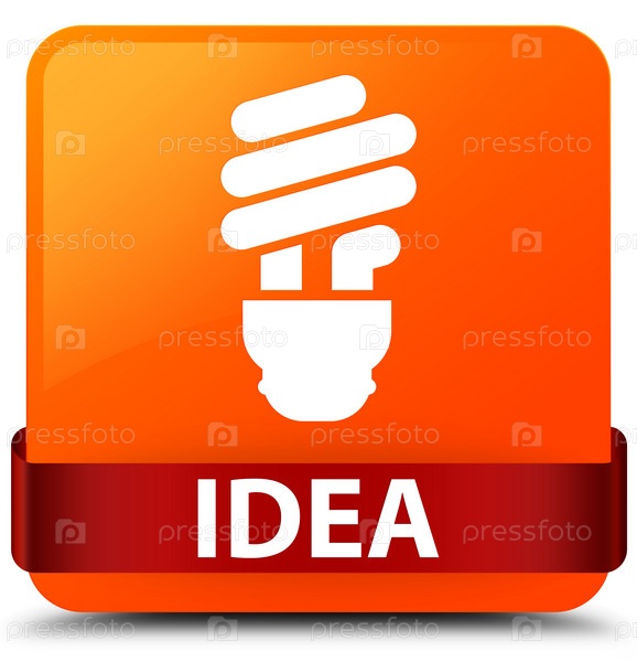 Идея (икона лампочки) оранжевая квадратная кнопка красная лента посередине