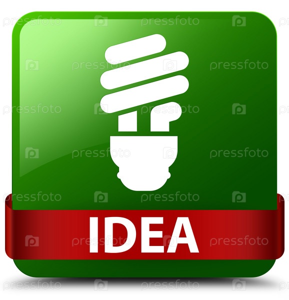 Идея (икона лампочки) зеленая квадратная кнопка красная лента посередине