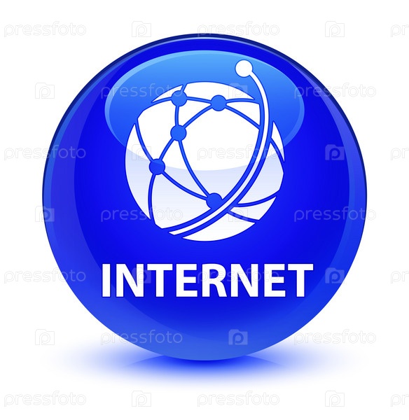 Интернет (икона глобальной сети) стеклянная голубая круглая кнопка