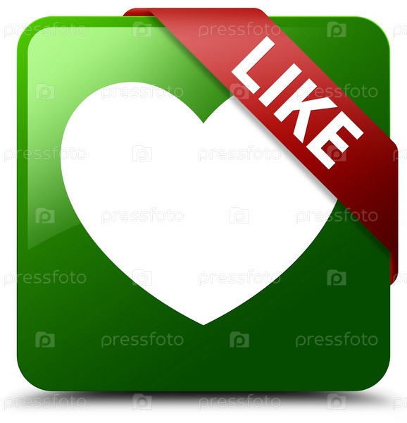 Как (икона сердца) зеленая квадратная кнопка красная лента в углу