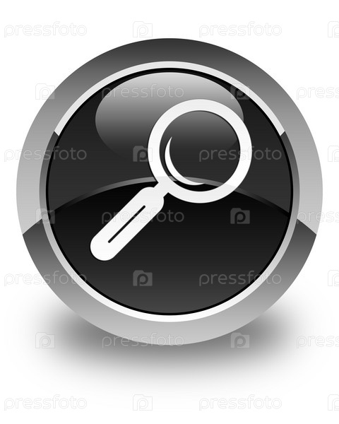Икона увеличительного стекла глянцевая черная круглая кнопка