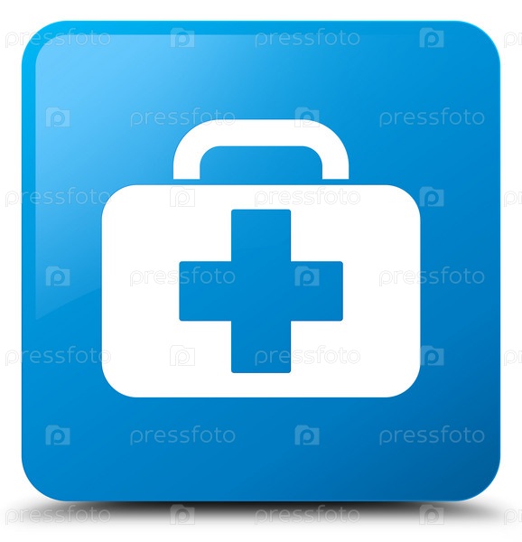 Икона медицинской сумки цыановый синий квадратный кнопка