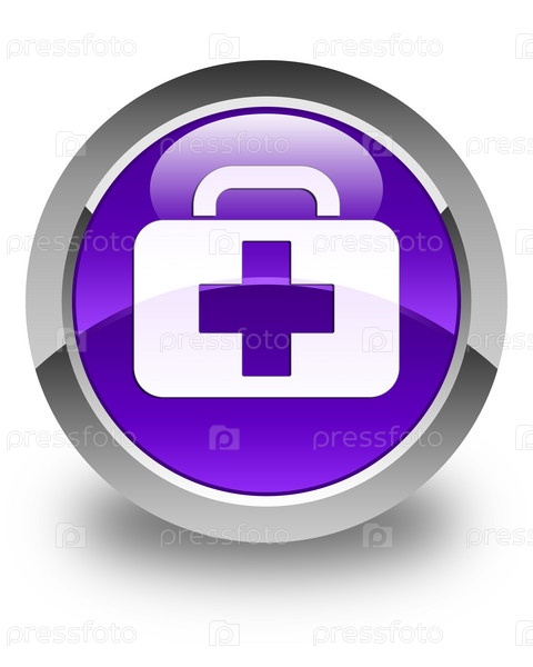 Икона медицинского пакета блестящая фиолетовая круглая кнопка