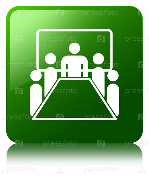 Икона комнаты совещаний зеленая квадратная кнопка