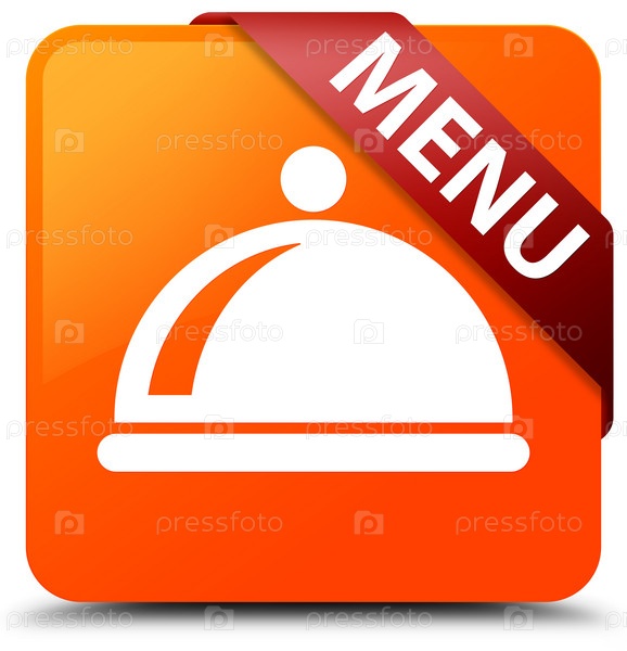 Меню (икона блюда) оранжевая квадратная кнопка красная лента в углу