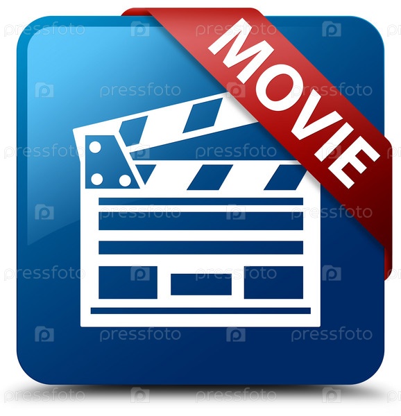 Movie (cinema clip icon) синяя квадратная кнопка красная лента в углу