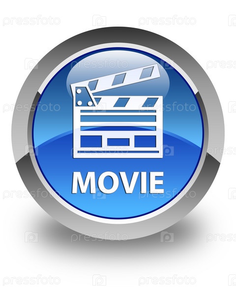 Фильм (икона клипа кинофильма) глянцевая голубая круглая кнопка