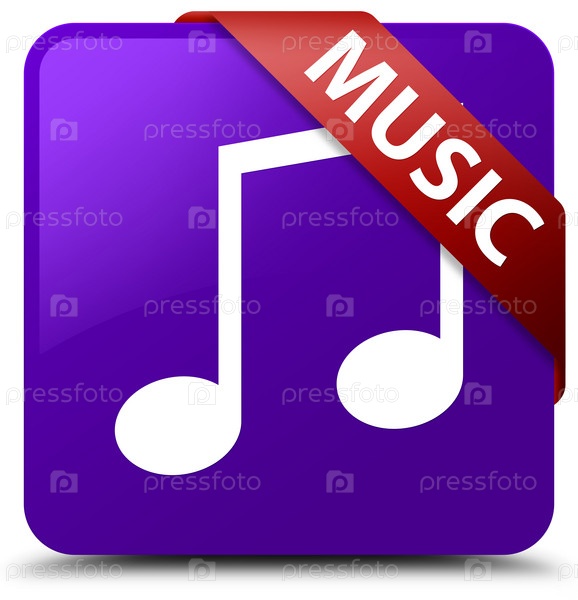 Музыка (икона мелодии) фиолетовая квадратная кнопка красная лента в углу