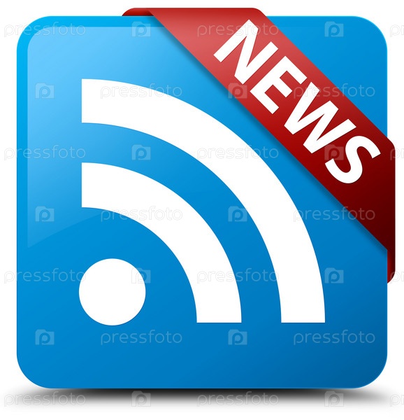 Новости (икона RSS) цыановый синий квадратный кнопка красная лента в углу