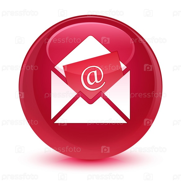 Икона электронной почты для рассылки новостей стеклянная розовая круглая кнопка