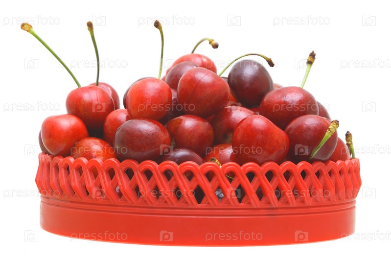 Ягоды черешни в красной вазочке