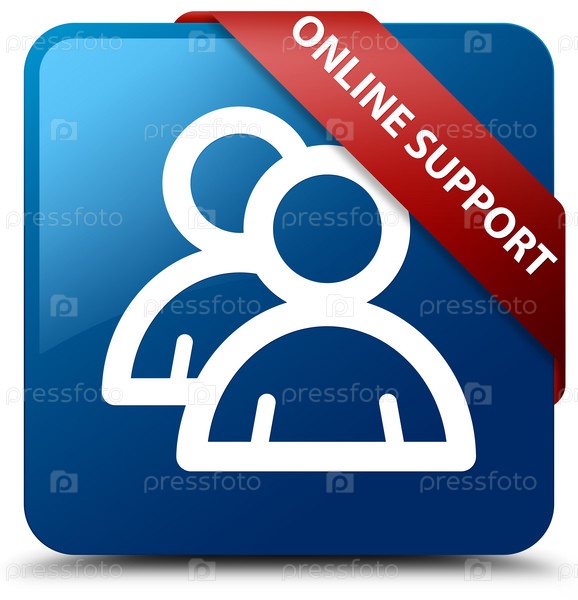 Онлайн-поддержка (икона группы) синяя квадратная кнопка красная лента в углу