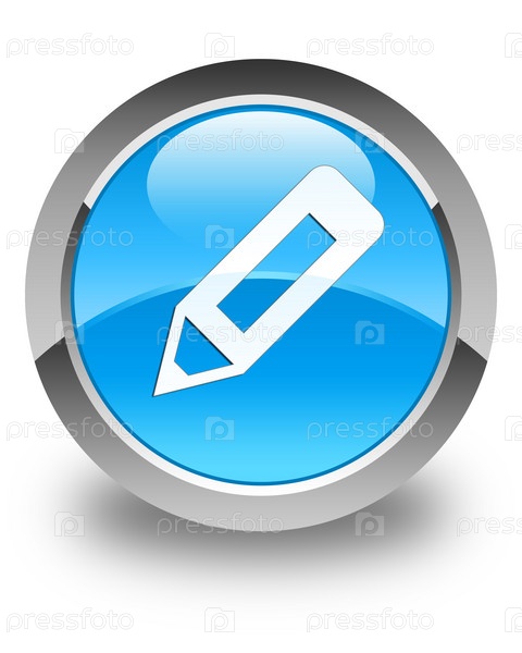 Икона карандаша блестящая синяя синевая круглая кнопка