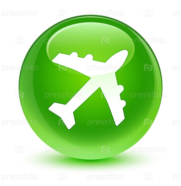 Икона самолета стеклянная зеленая круглая кнопка Самолет
