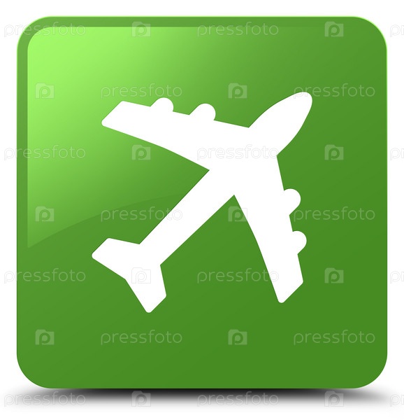 Иконка самолета мягкая зеленая квадратная кнопка Площадь