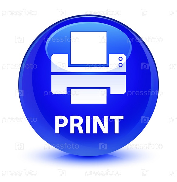 Печать (икона принтера) стеклянная голубая круглая кнопка