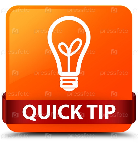 Быстрый совет (икона лампочки) оранжевая квадратная кнопка красная лента посередине
