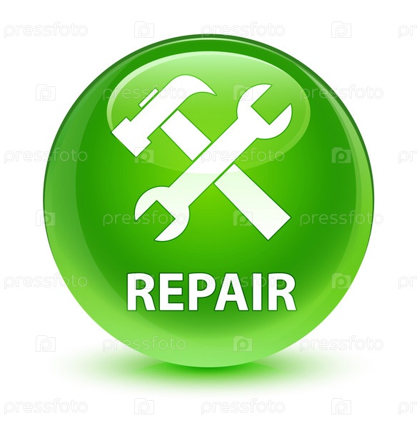 Ремонт (икона инструментов) стеклянная зеленая круглая кнопка