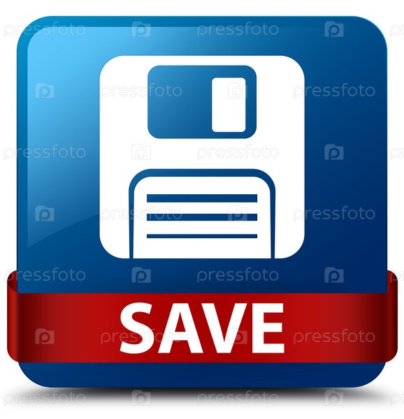 Сохранить (икона дискеты) синяя квадратная кнопка красная лента посередине