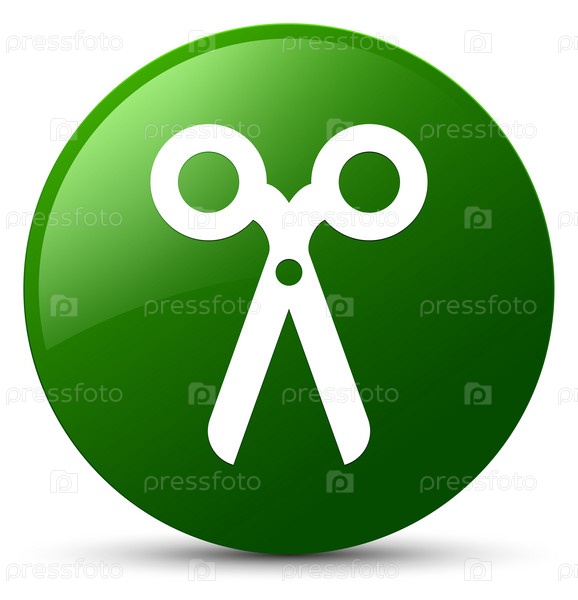 Икона ножницы зеленая круглая кнопка