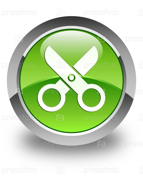 Икона ножницы глянцевая зеленая круглая кнопка