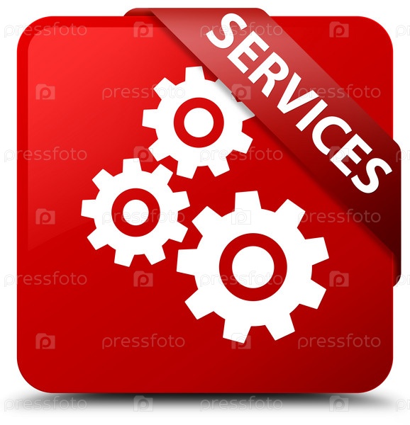 Услуги (икона передач) красная квадратная кнопка Красная лента в углу