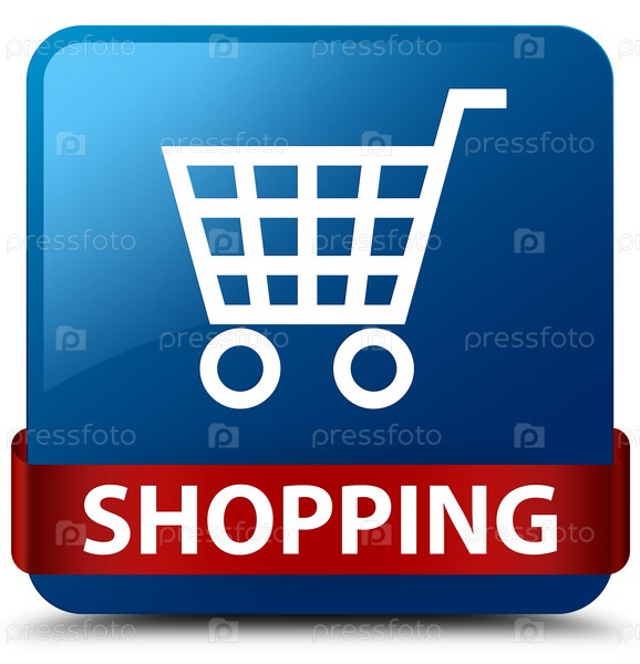 Шопинг синий квадратный кнопка красная лента посередине