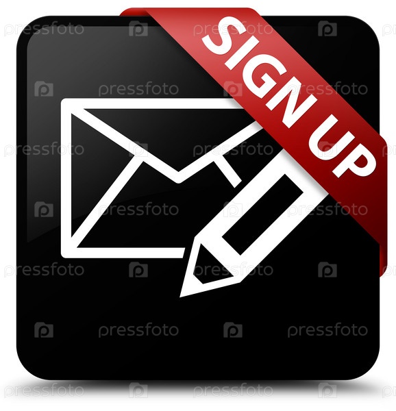 Sign up (edit mail icon) черная квадратная кнопка красная лента в углу