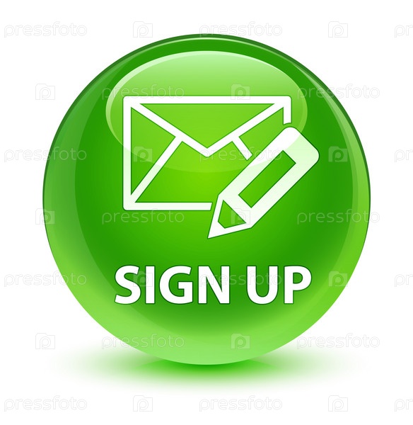 Sign up (edit mail icon) стеклянно-зеленая круглая кнопка