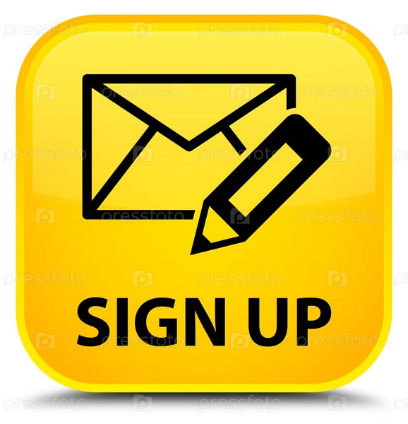 Sign up (edit mail icon) специальная желтая квадратная кнопка