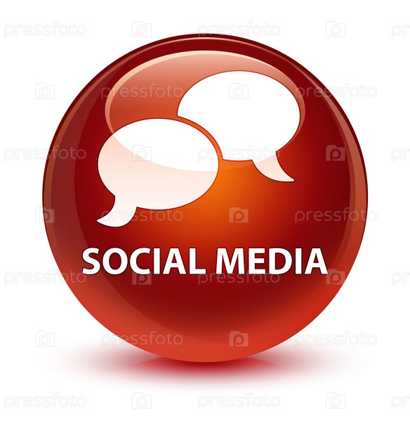 Социальные сети (икона пузыря чата) стеклянная коричневая круглая кнопка