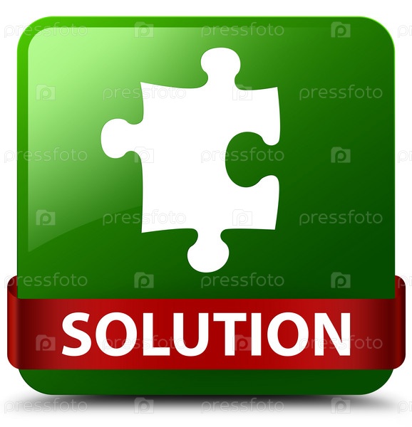 Решение (икона головоломки) зеленая квадратная кнопка красная лента посередине