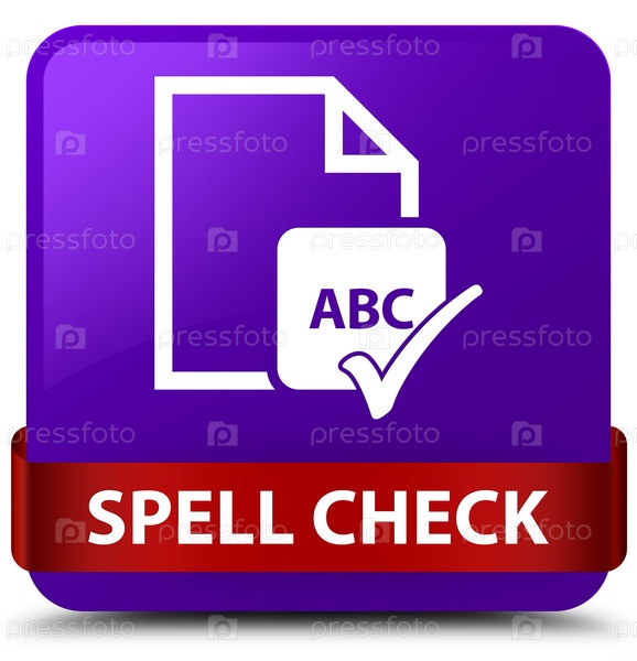 Проверка орфографии документа фиолетовый квадратный кнопка красная лента посередине