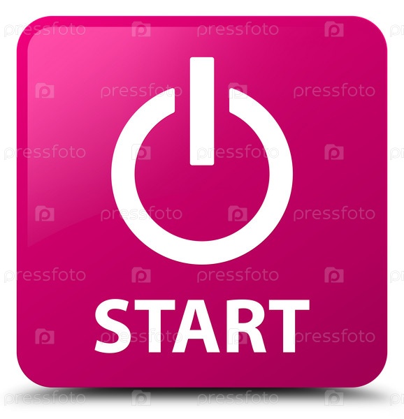Начать (икона питания) розовая квадратная кнопка