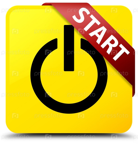 Старт (икона питания) жёлтая квадратная кнопка красная лента в углу