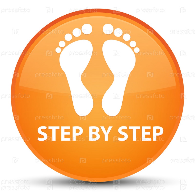 Шаг за шагом (икона отпечатков) специальная оранжевая круглая кнопка