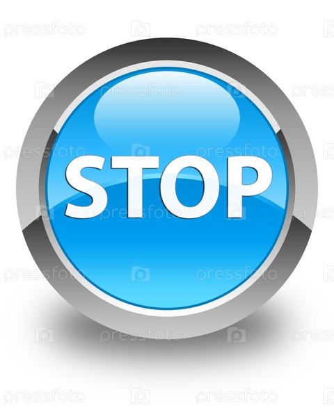 Остановите глянцевую сине-циановую круглую кнопку