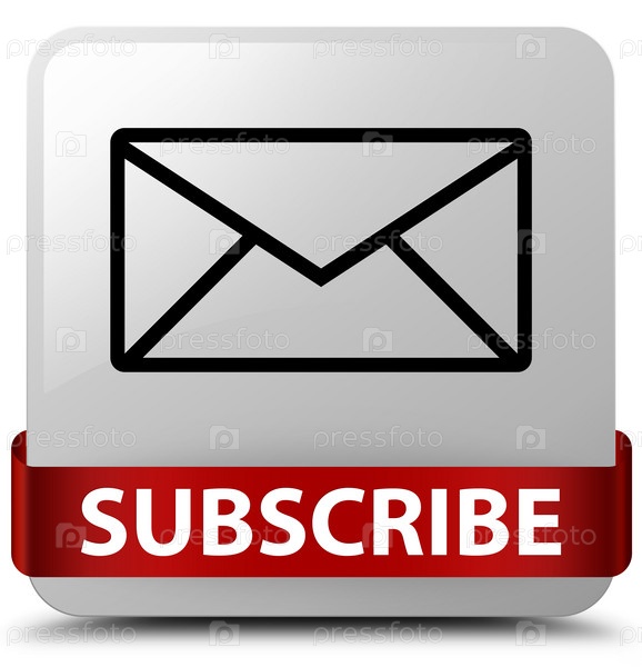 Подпишитесь (икона электронной почты) белая квадратная кнопка красная лента посередине