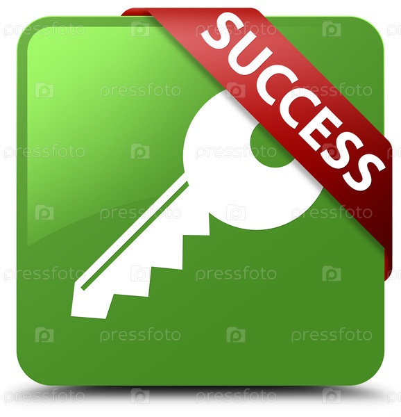 Успех (икона ключа) мягкий зеленый квадратный кнопка красная лента в углу