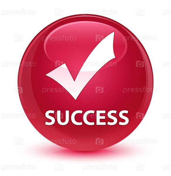 Успех (икона проверки) стеклянная розовая круглая кнопка
