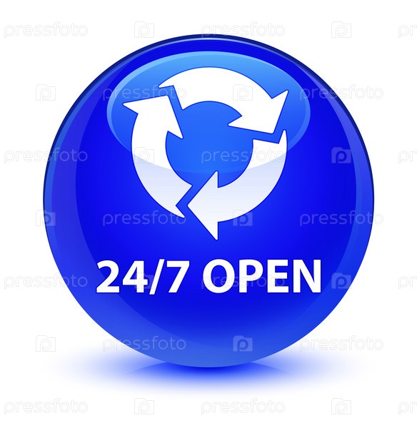 24/7 открытая стеклянная голубая круглая кнопка