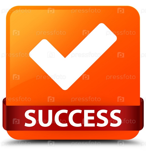 Успех (икона проверки) оранжевая квадратная кнопка красная лента посередине