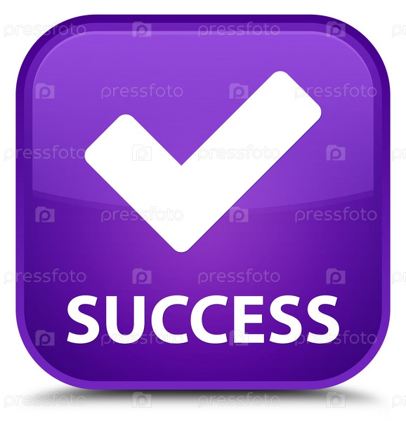 Успех (икона проверки) специальная фиолетовая квадратная кнопка